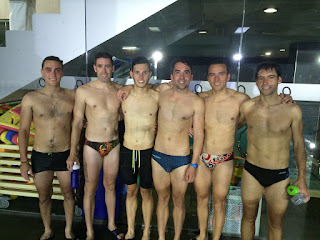 El sábado, y con la vista puesta en Praia da Luz, donde debutare en triatlón esta temporada, participe con mis compañeros de club en una competición en piscina. 1h.30' de nado a tope, en series de 50 m. donde cada uno de los 6 componentes debia dar lo máximo en cada una, descansando el tiempo en que el resto nadaba. Hice 25x50 a un ritmo superior al que suelo entrenar...